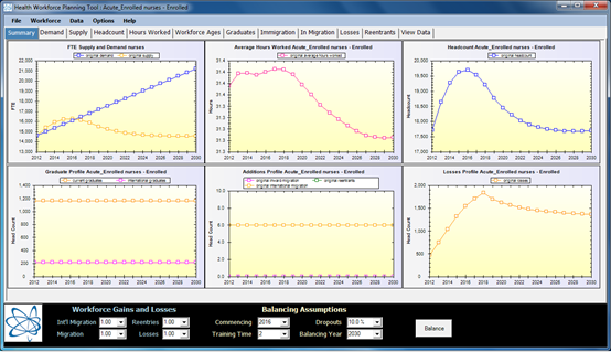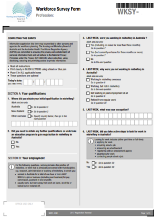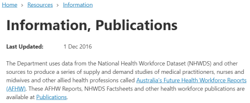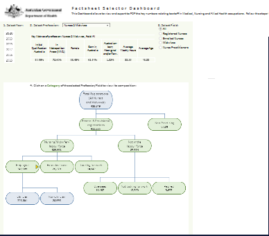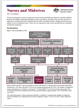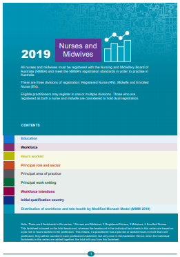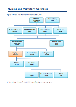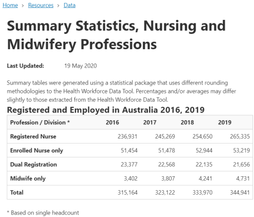 Summary Statistics for the Nursing and Midwifery Professions, populated with statistics from the Health Workforce Data Tool using the National Health Workforce Dataset (NHWDS)