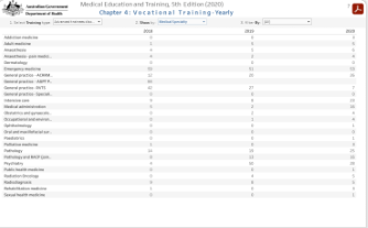 Summary Statistics for the Medical Profession, populated with statistics from the Health Workforce Data Tool using the National Health Workforce Dataset (NHWDS)